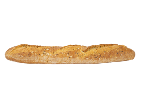 baguette de pain aux céréales isolé sur un fond blanc