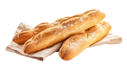 Three golden brown baguettes freshly baked crisp crust rustic charm on on transparent background