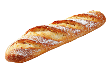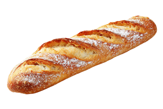 Crusty baguette isolated on transparent background, a classic french bread for any meal