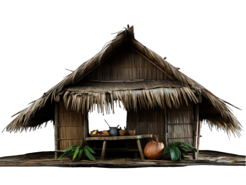 Traditional Filipino Nipa Hut Isolated on Transparent or White Background