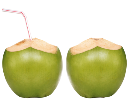 coco verde cortado isolado em fundo transparente - água de coco com canudo
