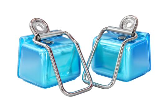 Pair of glossy blue cube-shaped charms with silver bail clasps isolated on a dark surface isolated on transparent background