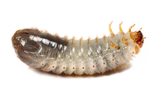 Larva European rhinoceros beetle isolated on white, Oryctes nasicornis