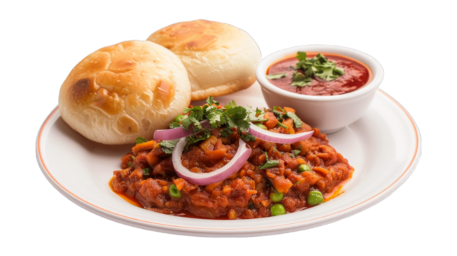 Delicious pav bhaji isolated on white background, PNG