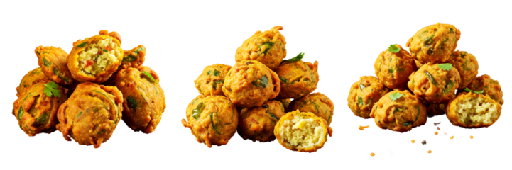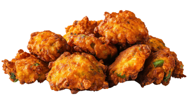 Delicious Indian onion pakora fritters, a popular savory snack, served on a transparent background, perfect for showcasing authentic Indian cuisine and street food