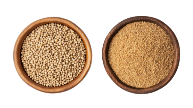 Bajra Grains and Bajra Powder Overhead Side by Side on Transparent Background