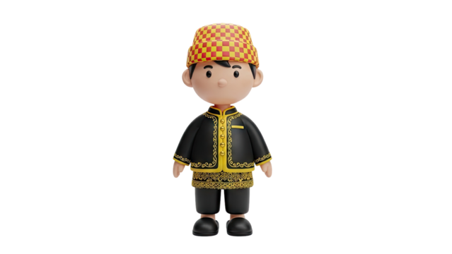 3D Cartoon Boy in Traditional Malaysian Songkok and Baju Melayu on transparent background