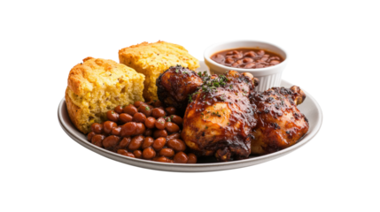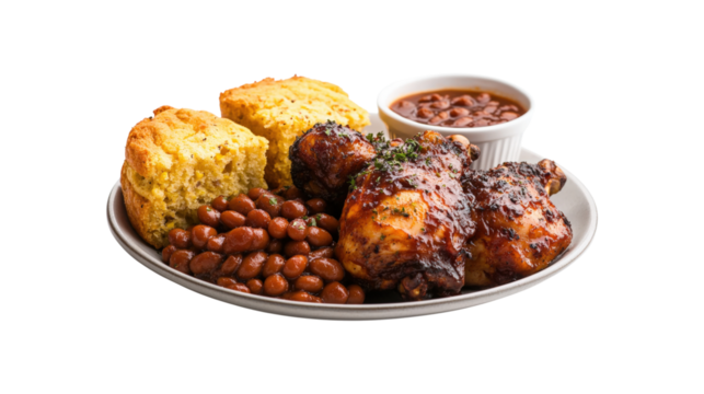 Caribbean Food Set with Jerk Chicken, Rice and Beans, and Fried Plantains, Isolated PNG