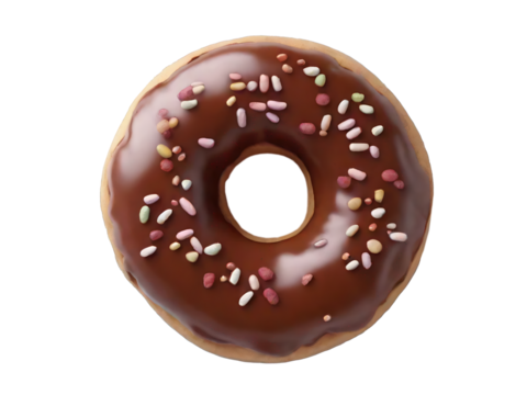 Chocolate glazed donut with sprinkles isolated on white / transparent background.