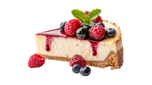 Cheesecake isolated on transparent background.