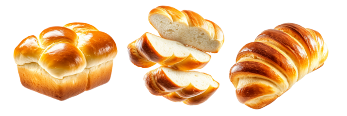 Cheerful chef standing with freshly baked bread assortment display transparent
