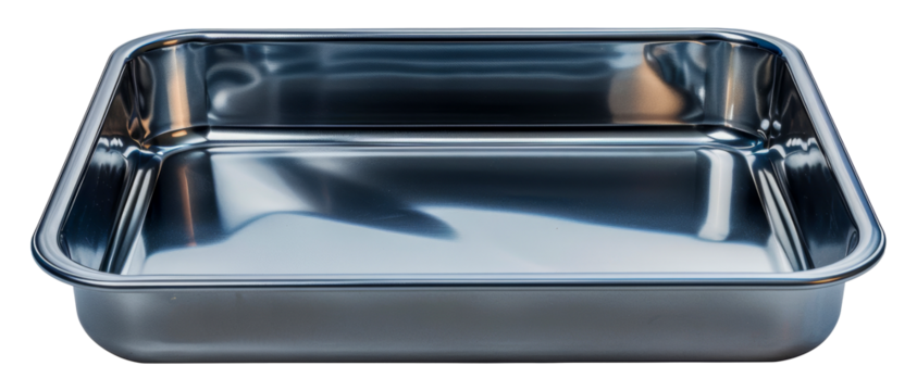 Shiny stainless steel rectangular baking tray, cut out - stock png.