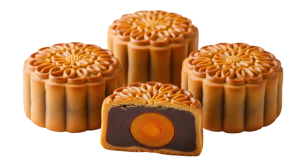 Delicious mooncakes featuring a traditional lotus seed paste and salted egg yolk filling