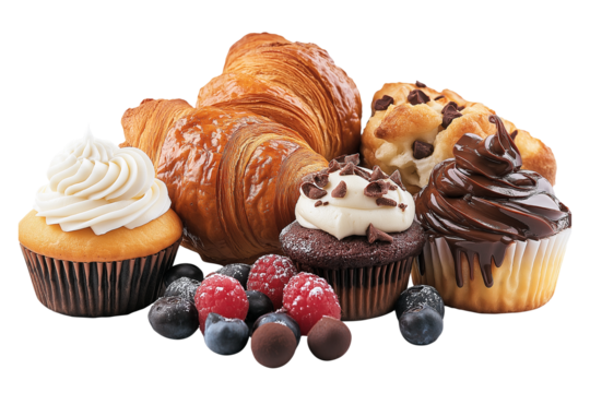 Delicious assortment of baked pastries on transparent background. Assorted Baked Pastries PNG.