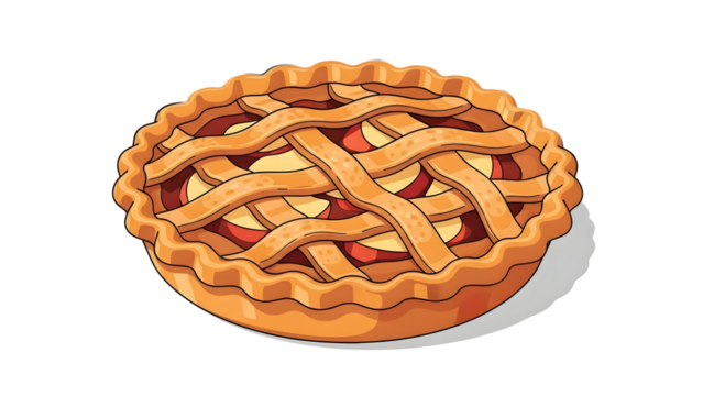 Cartoon Apple Pie Vector Illustration with Lattice Crust on Black Background