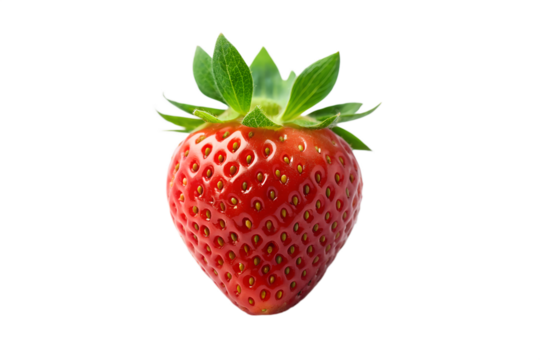 Single red strawberry isolated on white background