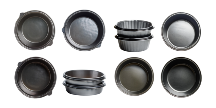 Black round baking tray with a non-stick surface for cooking or serving. Tray isolated and AI generated.  .