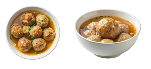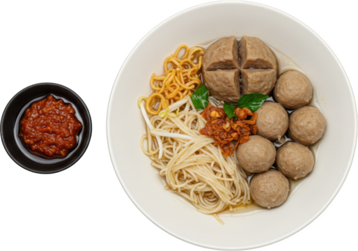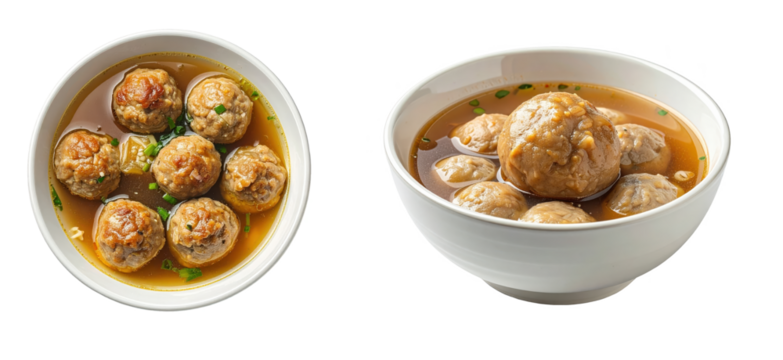 A delicious serving of Bakso, a traditional Indonesian meatball dish, isolated on a transparent background, perfect for food, Asian cuisine, and cultural design projects.