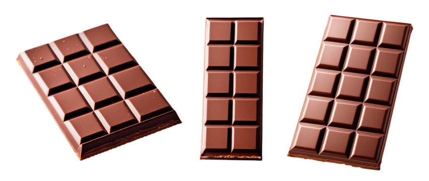 Conjunto de Barras de chocolate isolados, em fundo transparente.
