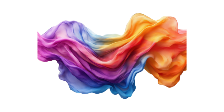 Colorful Flowing Fabric Waves. Abstract Art And Creative Design Concept Isolated On Transparent Background