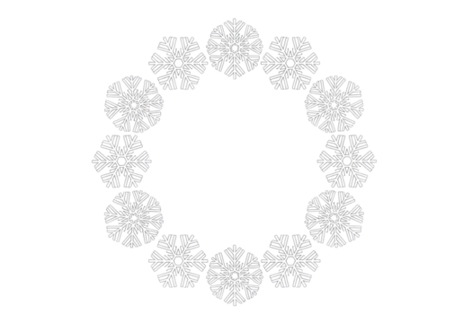Symmetrical snowflake circle isolated on transparent background