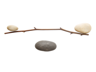 Minimalist still life with twig and stones on transparent background