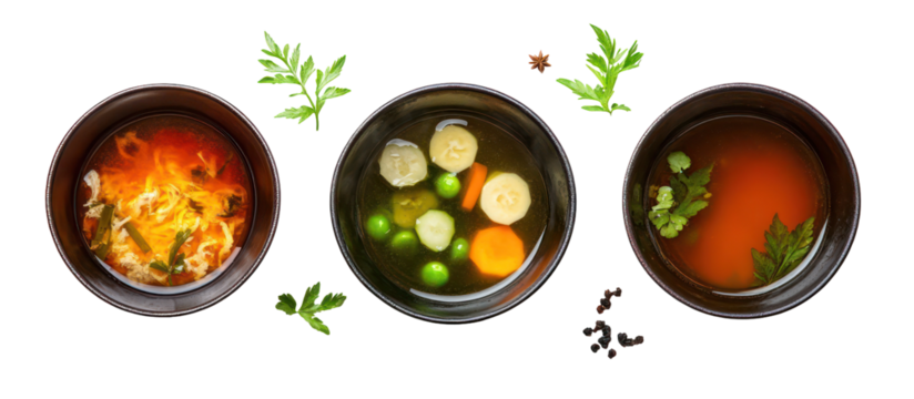 Healthy assortment of salads in bowls, fresh vegetables, balanced diet, cut out transparent