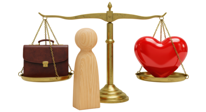 Isolated Heart and Briefcase on Scales Representing Work-Life Balance