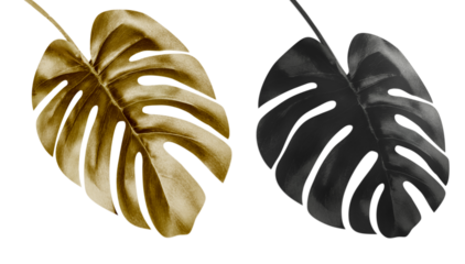 Isolated of golden and balck monstera leaves
