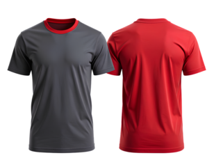 Red and Balck Views of Dark Gray Plain T-Shirt, Isolated PNG