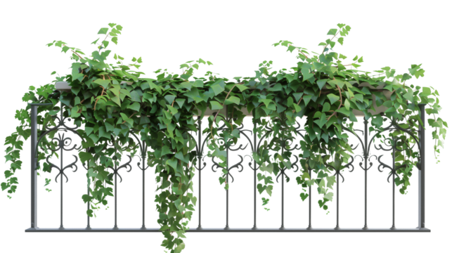 Creeper plants draping over a balcony railing, isolated on transparent background