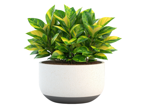 Closeup of a thriving potted plant, vibrant green leaves and detailed pot texture in tranquil setting