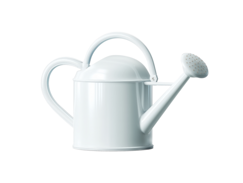 A pristine white watering can, perfect for nurturing plants and flowers in any garden or indoor setting, blending practicality with style.