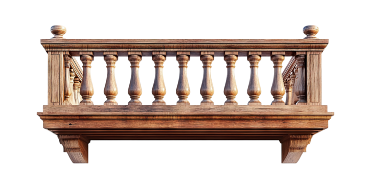 Decorative wooden balcony railing, perfect for classic and vintage architecture, isolated on transparent background