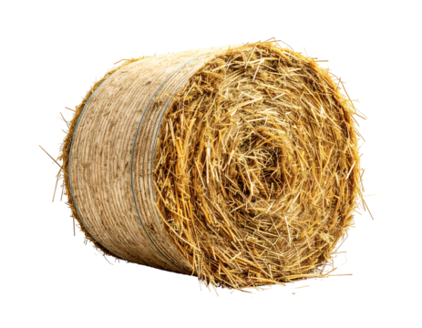 Round bale of hay isolated on transparent background