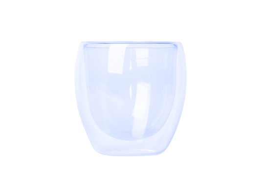 Glass empty glass with a double bottom of the average size. From blue glass. Isolated. PNG