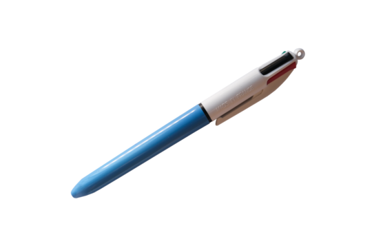 Four color ballpoint pen on transparent background