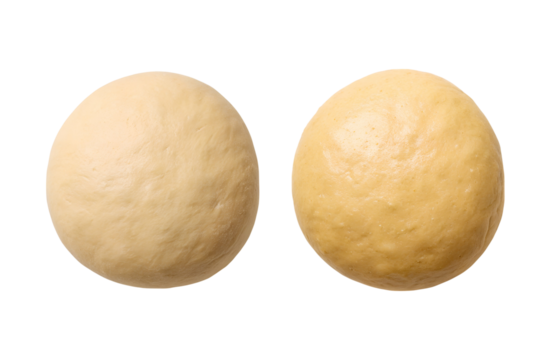 Smooth balls of dough show slightly different processing stages of leavening transparent background Generative AI