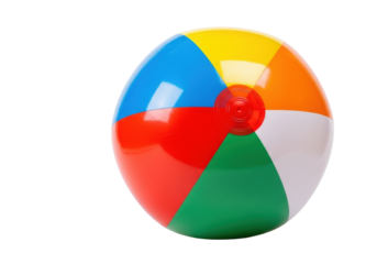 Colorful beach ball with translucent panels and white valve inflatable round, Isolated, Png Transparent Background