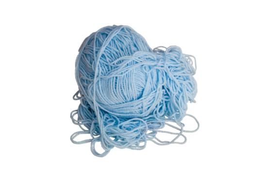 Ball of natural off-white yarn for knitting or crafting, isolated on transparent background