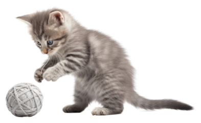 An adorable, fluffy kitten playing with a ball of yarn, emphasizing the texture of the fur and yarn