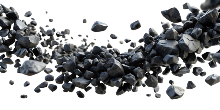 Pile of rocks is scattered across. On transparent background. Png file