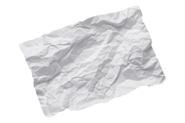 white crumpled paper sheet isolated on transparent png background,Design template or mockup.
