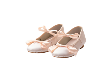 Elegant golden ballet pointe shoes with flowing ribbons isolated on transparent background
