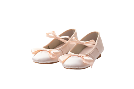 Delicate Peach Satin Ballet Flats With Bow Accents for a Special Occasion on a Clear PNG or White Background.