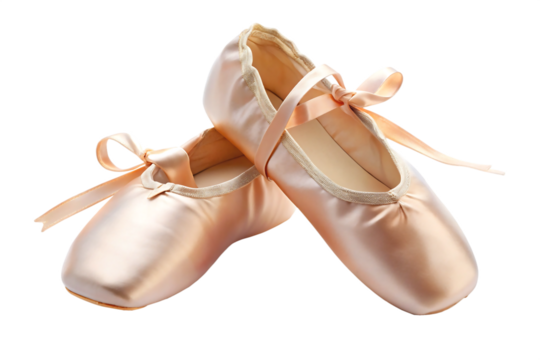 Delicate satin ballet slippers adorned with pink silk ribbon image, Isolated On Png Transparent Background