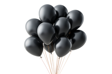 Gold chrome and black balloon with confetti, a bunch of balloons on transparent background. Balloons for wedding, holiday. Valentine's day gift