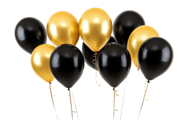 Celebrate in style with golden confetti and striking red and gold balloons, bringing vibrance and joy to any party setting, isolated on transparent background.
