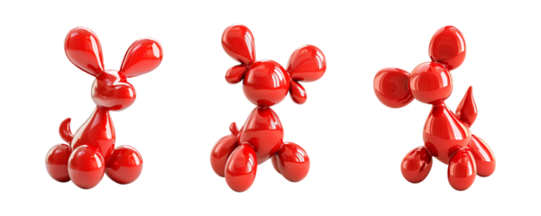 Set of Red balloon dog sculpture with shiny surface features cute and playful design isolated on transparent background
