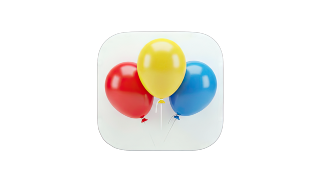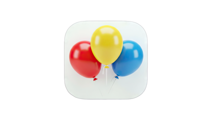 Colorful balloons on a transparent background. Balloons in yellow, blue, and pink colors. Celebration and party concept.